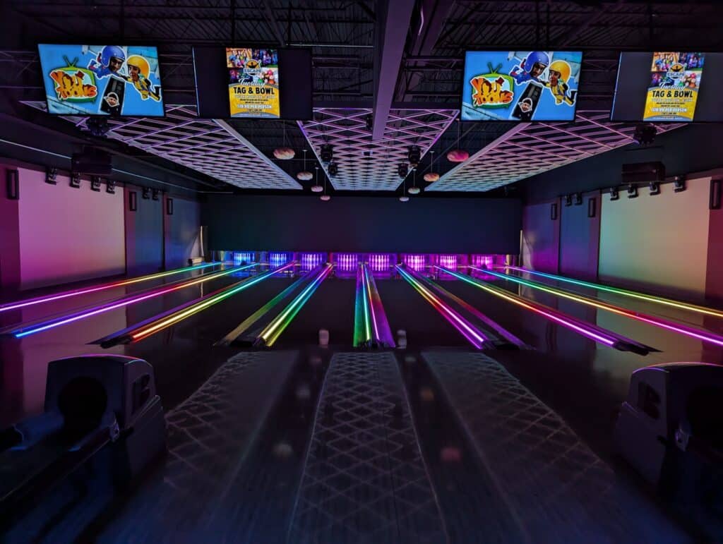 Escape is perfect for single games with friends to full parties for groups and gatherings. Our private VIP Suite, featuring 8 of our 30 premium bowling lanes, is ideal for group events. From kids, teens, and adults to grandparents, everyone can enjoy bowling at Escape. Bowlers of all ages and skill levels will find fun-for-all bowling with our competition-level lanes. VIP Suite Lanes now feature Hyperbowling, which fuses bowling with video game action. Our LED wall and TVs are perfect for video presentations. We even offer full service catering options and drink services.