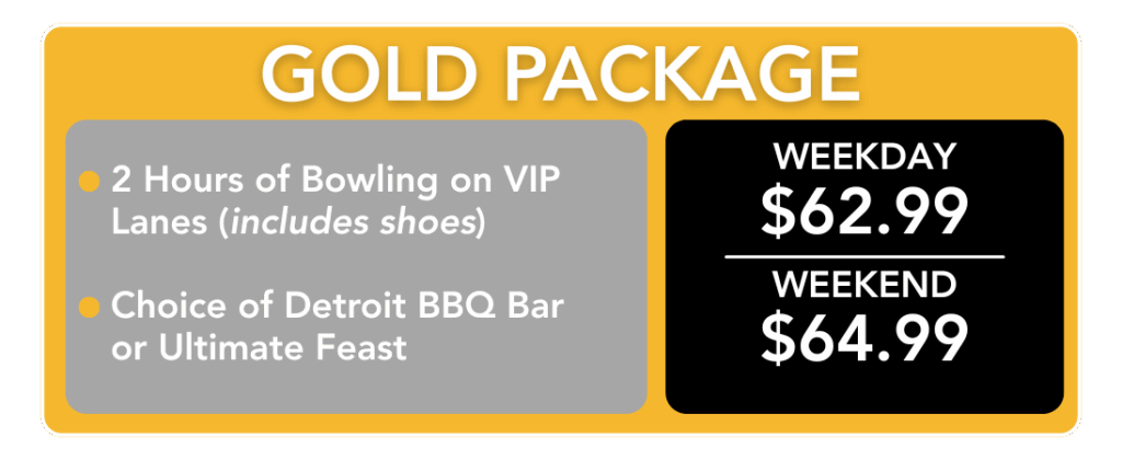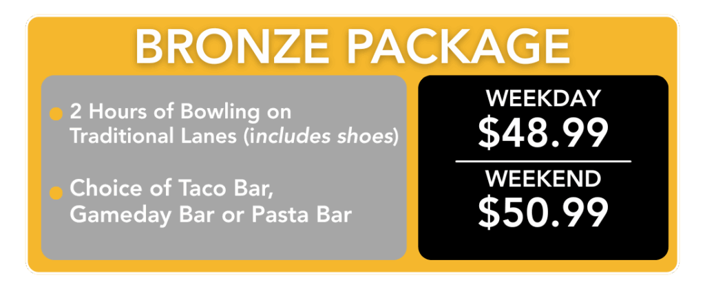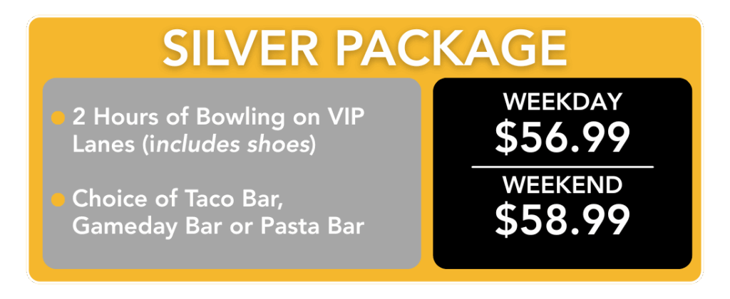 *All pricing is per person. 20-person minimum. Private events require rental of all 8 VIP Suite Lanes.